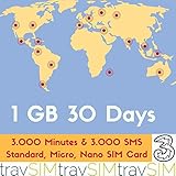 » #6: 1GB+3000minutes+3000texts Prepaid Sim Card for 72 Destinations Standard Nano Micro 3G 30 days